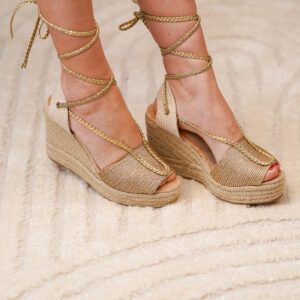 0 de 5Sandalia de cuña de yute para mujer, comodas y elegantes, diseño moderno con cierre de cordones