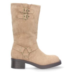 Botas moteras tacón bajo hebillas mujer color Beige
