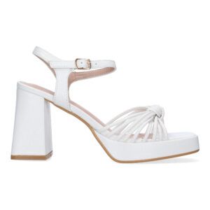 Sandalia de tacón ancho para mujer con tiras enredadas Blanco