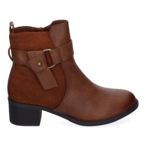 Botines de tacón con cierre de cremallera y adorno trasero metálico.