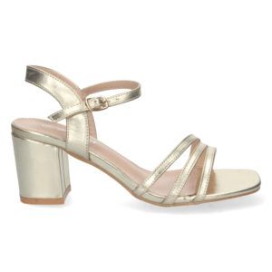 Sandalias tacón alto de fiesta oro mujer con pala cruzada