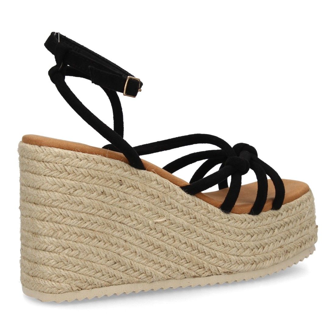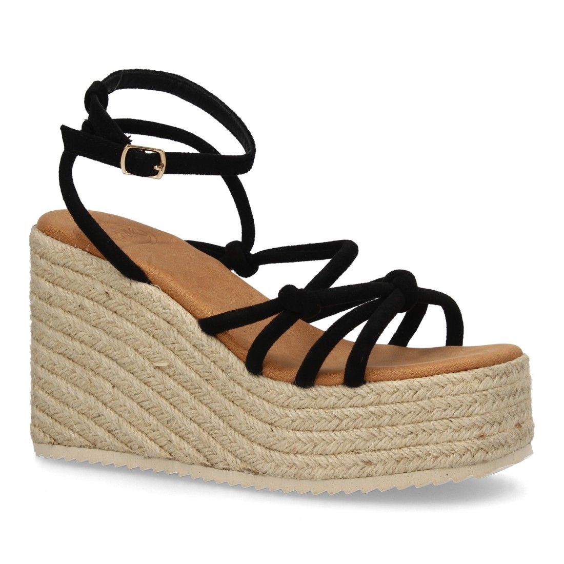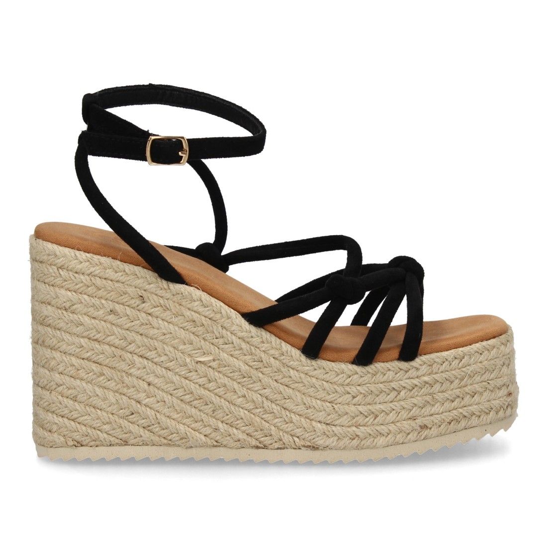 Sandalias de mujer con cuña de yute, diseño de tiras finas cruzadas en el empeine, cierre con hebilla al tobillo, cuña forrada en yute trenzado, ideal verano.