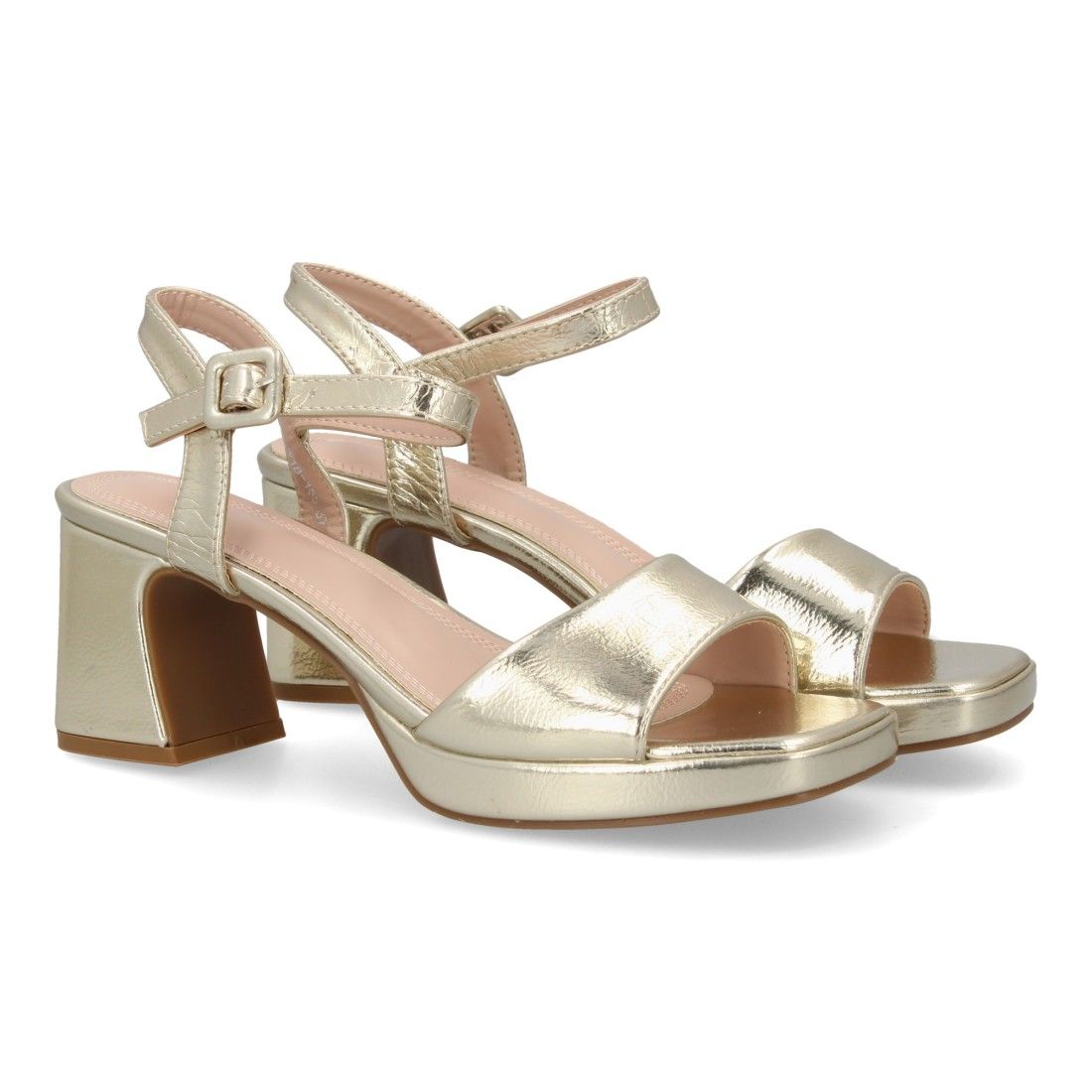 Sandalias tacón alto de fiesta champán mujer con pala cruzada