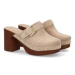 Zueco de tacon comodos y elegantes diseño moderno bicolor con hebilla decorativa