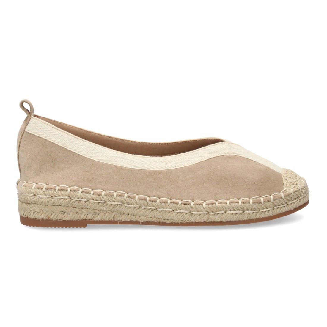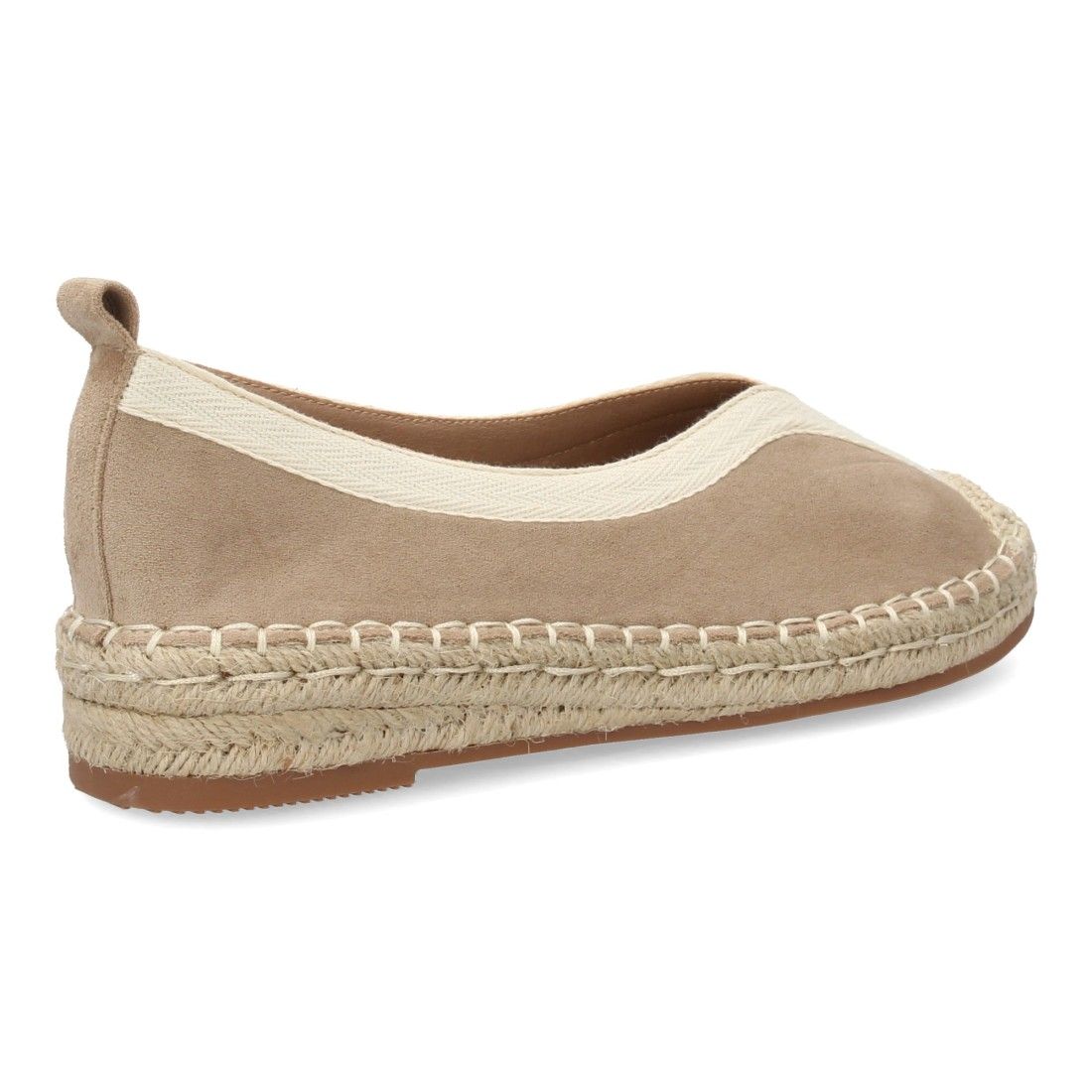 Alpargata plana de estilo tradicional para mujer, punta cerrada, sin cierre. Suela acolchada y cuña cómoda, ribete y la suela de yute, ideal primavera verano.