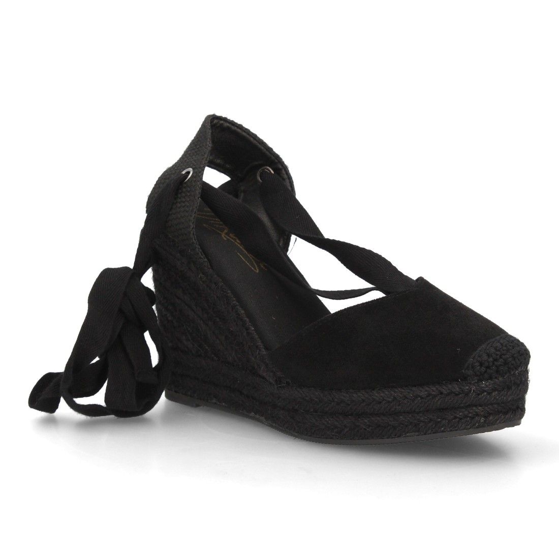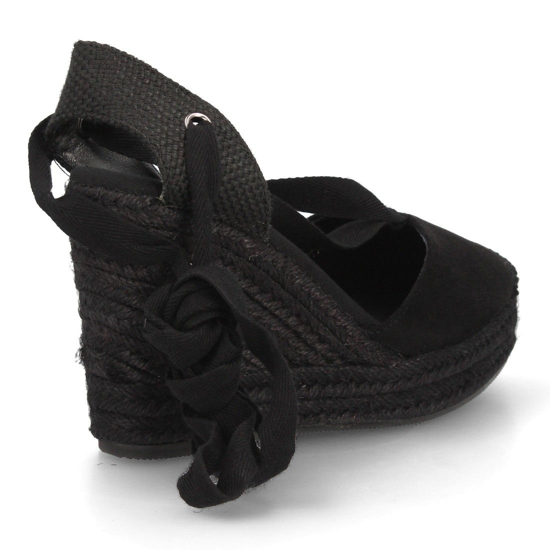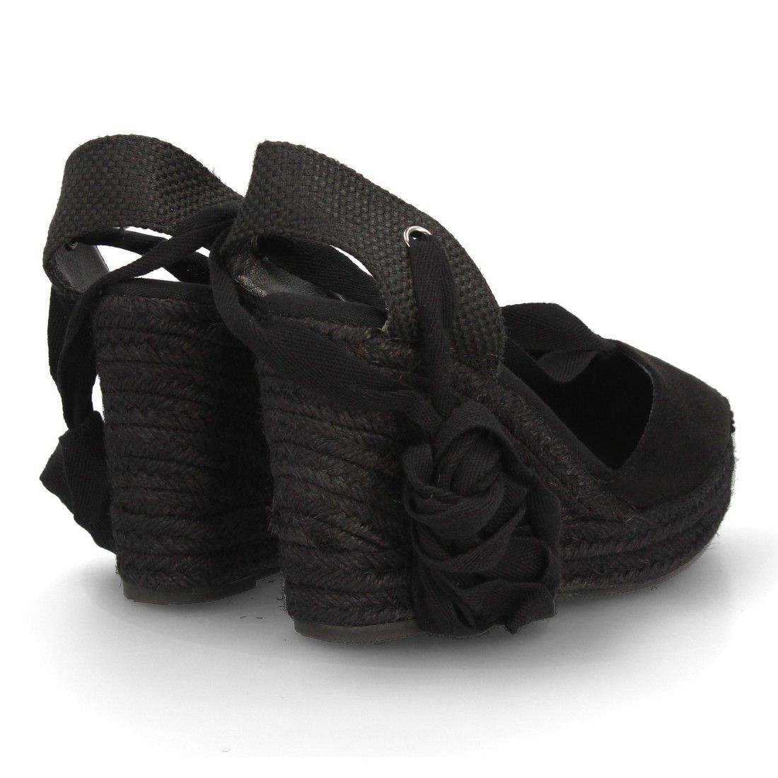 Alpargata sandalia de mujer con cuña de esparto para mujer, Cierre de cintas al tobillo o atadas por la pierna, ajustable, talon abierto, ideal primavera verano.