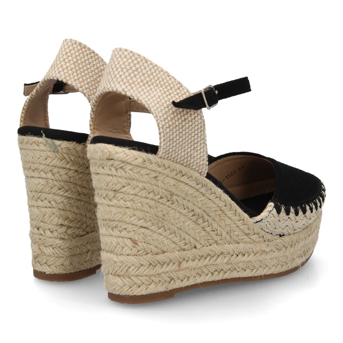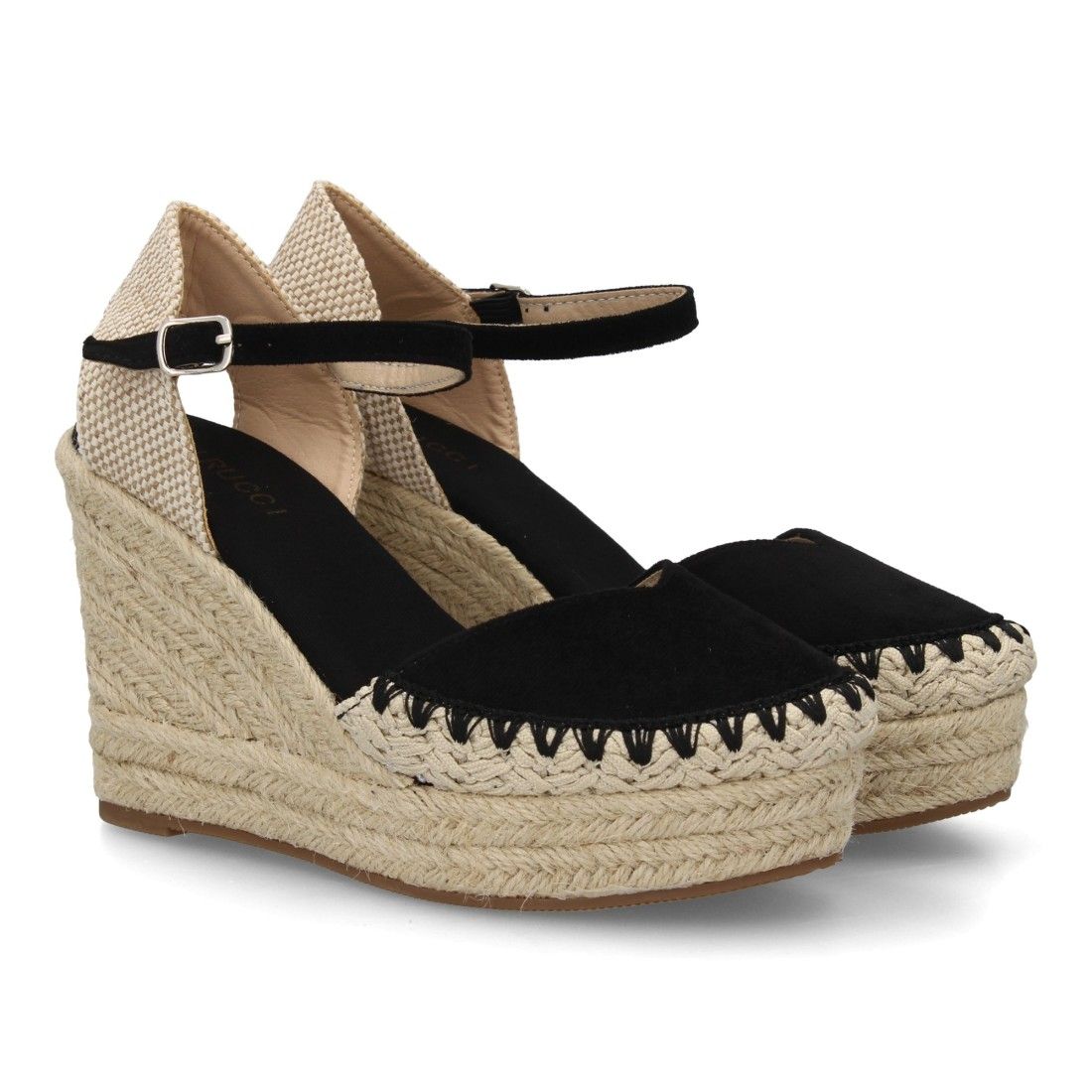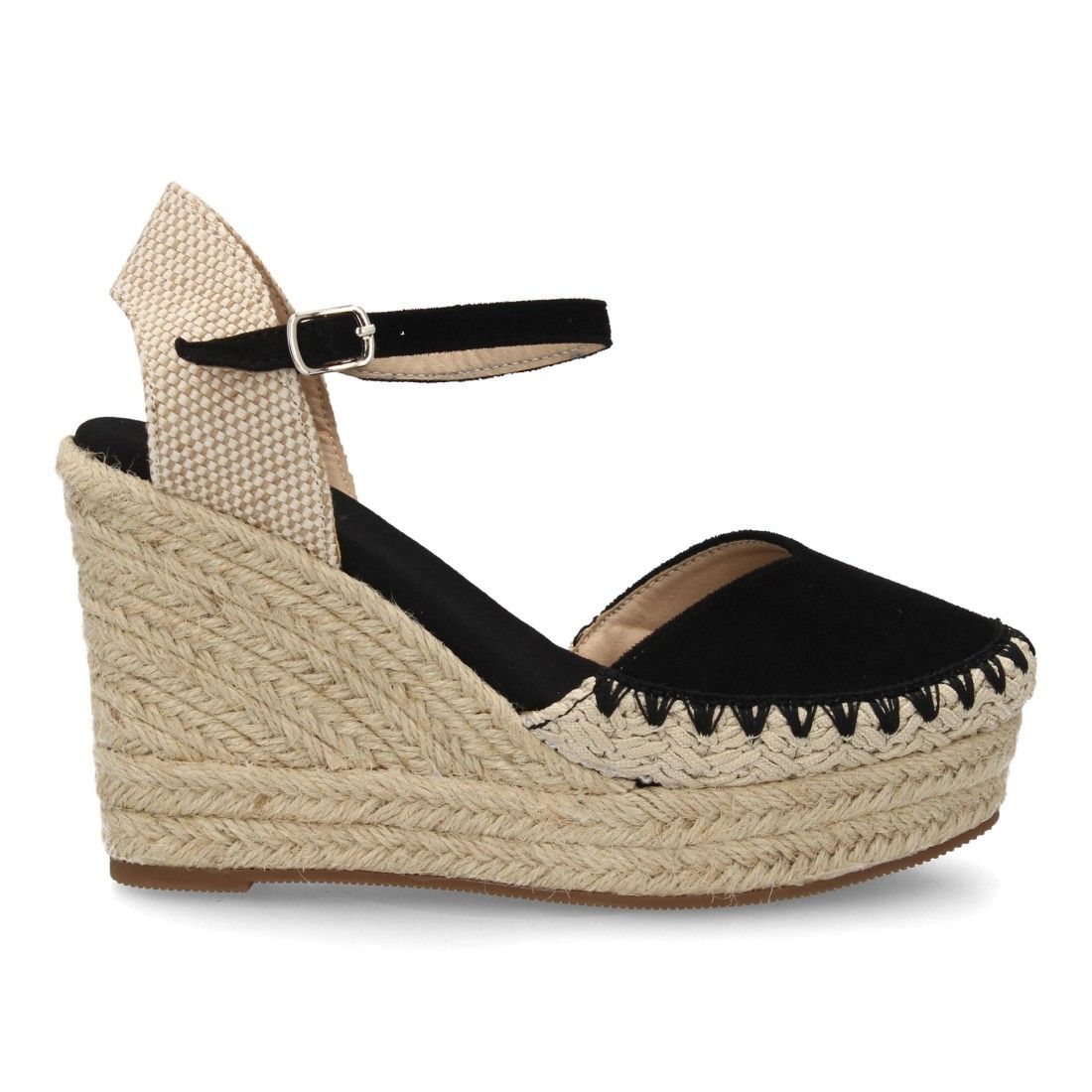Alpargata sandalia de mujer con cuña de esparto y detalle decorativo en la pala, para mujer, Cierre de hebilla ajustable, talon abierto, ideal primavera verano.