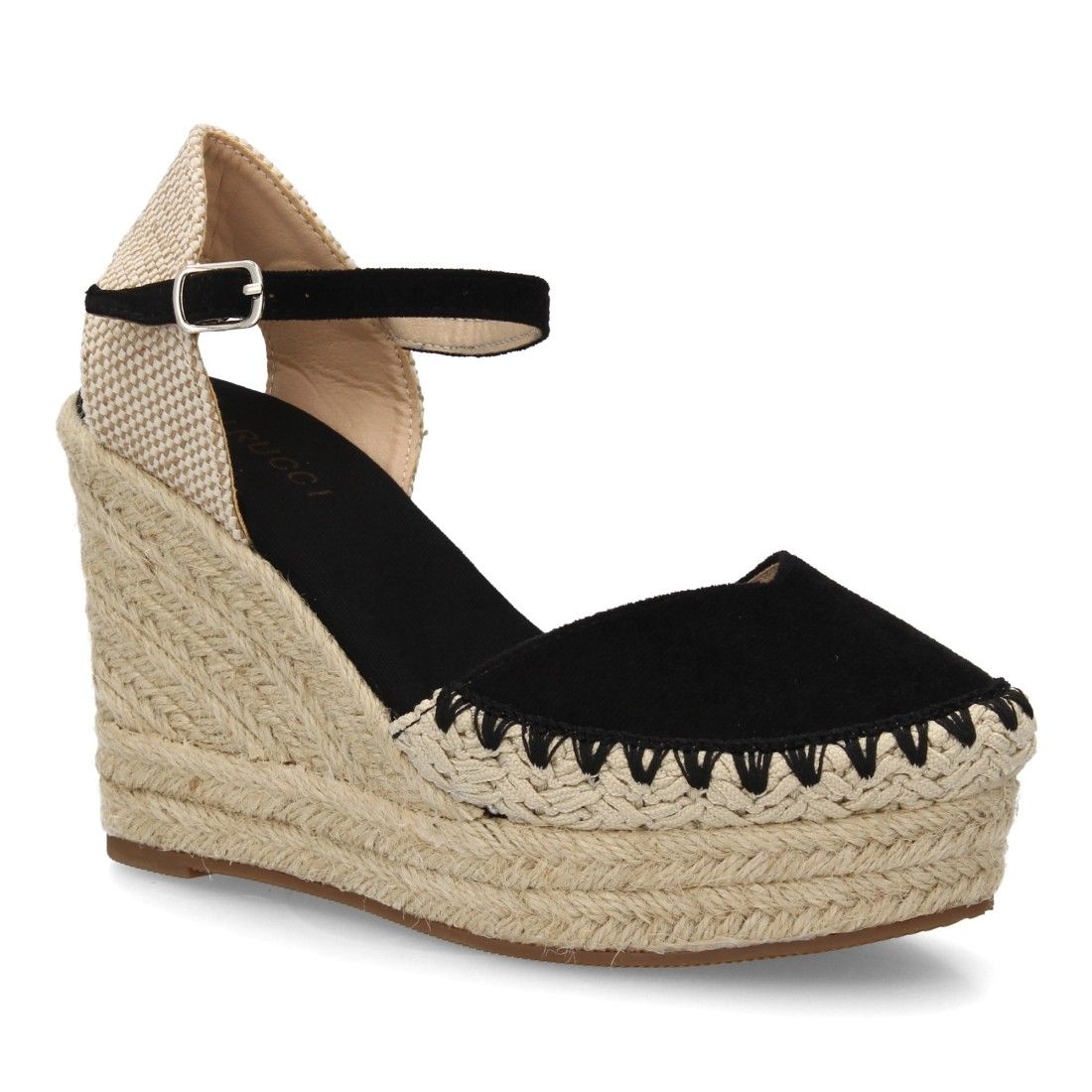 Alpargata de cuña alta de esparto con cierre de hebilla