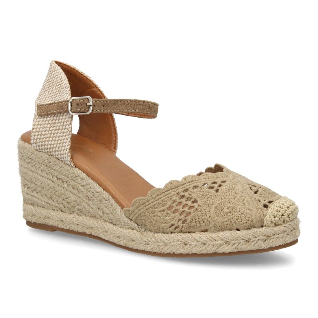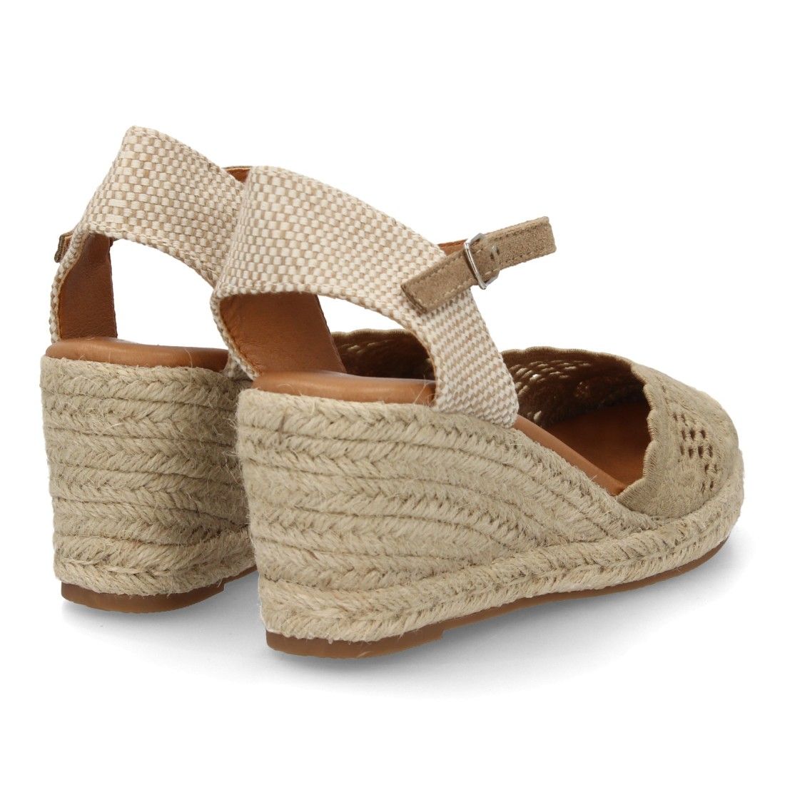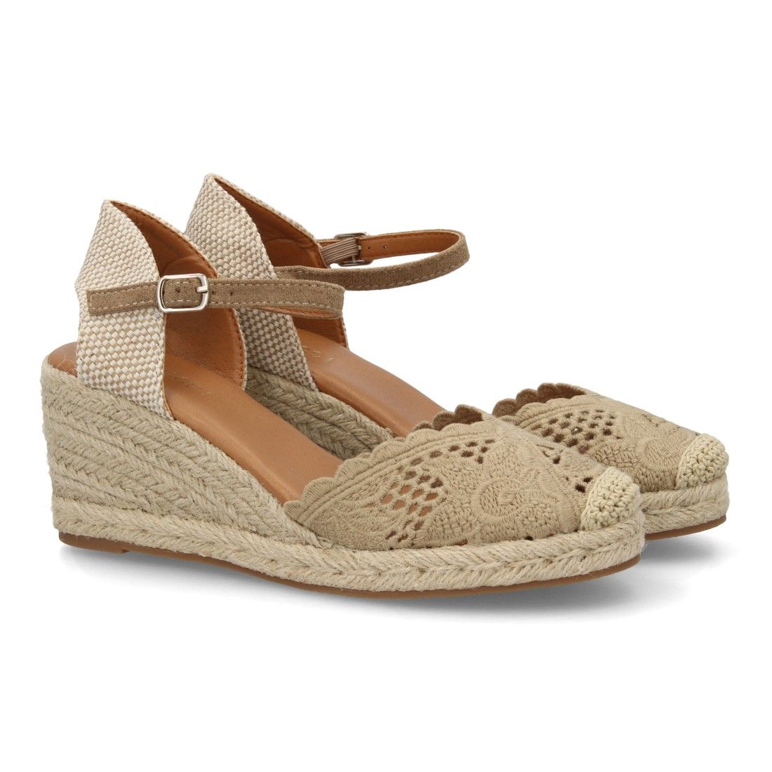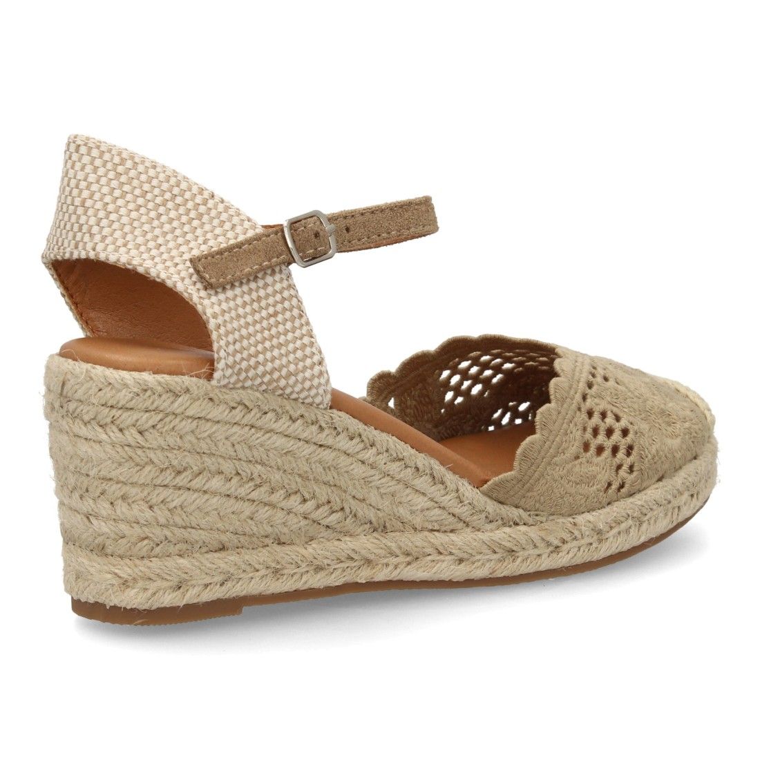 Alpargata de mujer con cuña de esparto y pala bordada con acabado artesanal para mujer, Cierre de hebilla ajustable, diseño calado en la punta, ideal primavera verano.
