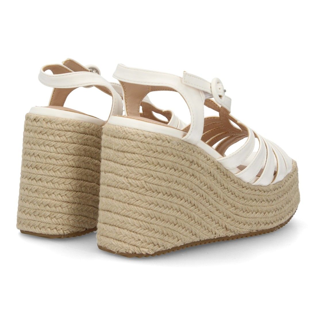 Sandalia de mujer con cuña alta de esparto y plataforma, diseño de tiras múltiples y pulsera trasera con cierre ajustable de hebilla, muy comoda ideal para diario primavera verano