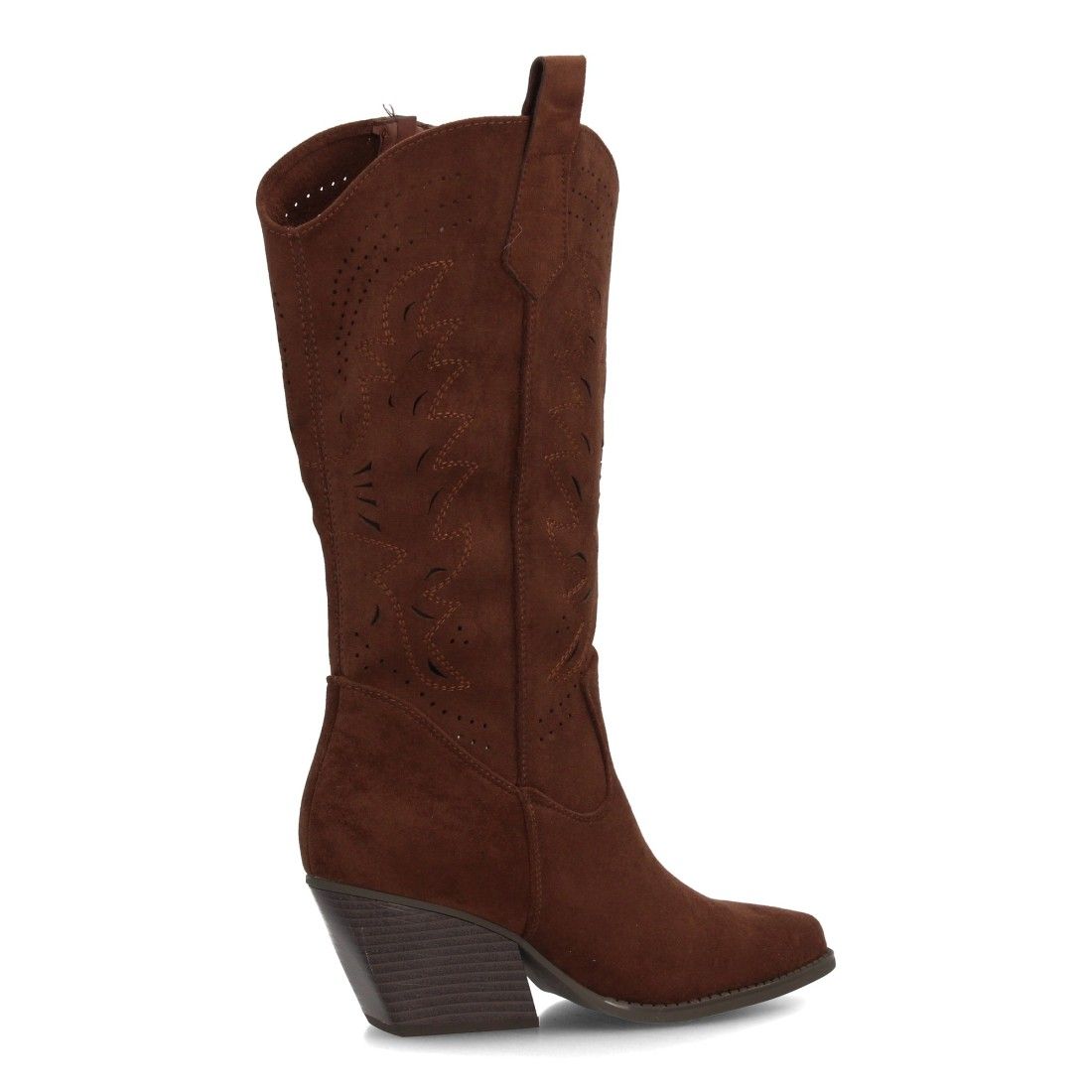 Bota alta cowboy mujer tacón y calados decorativos