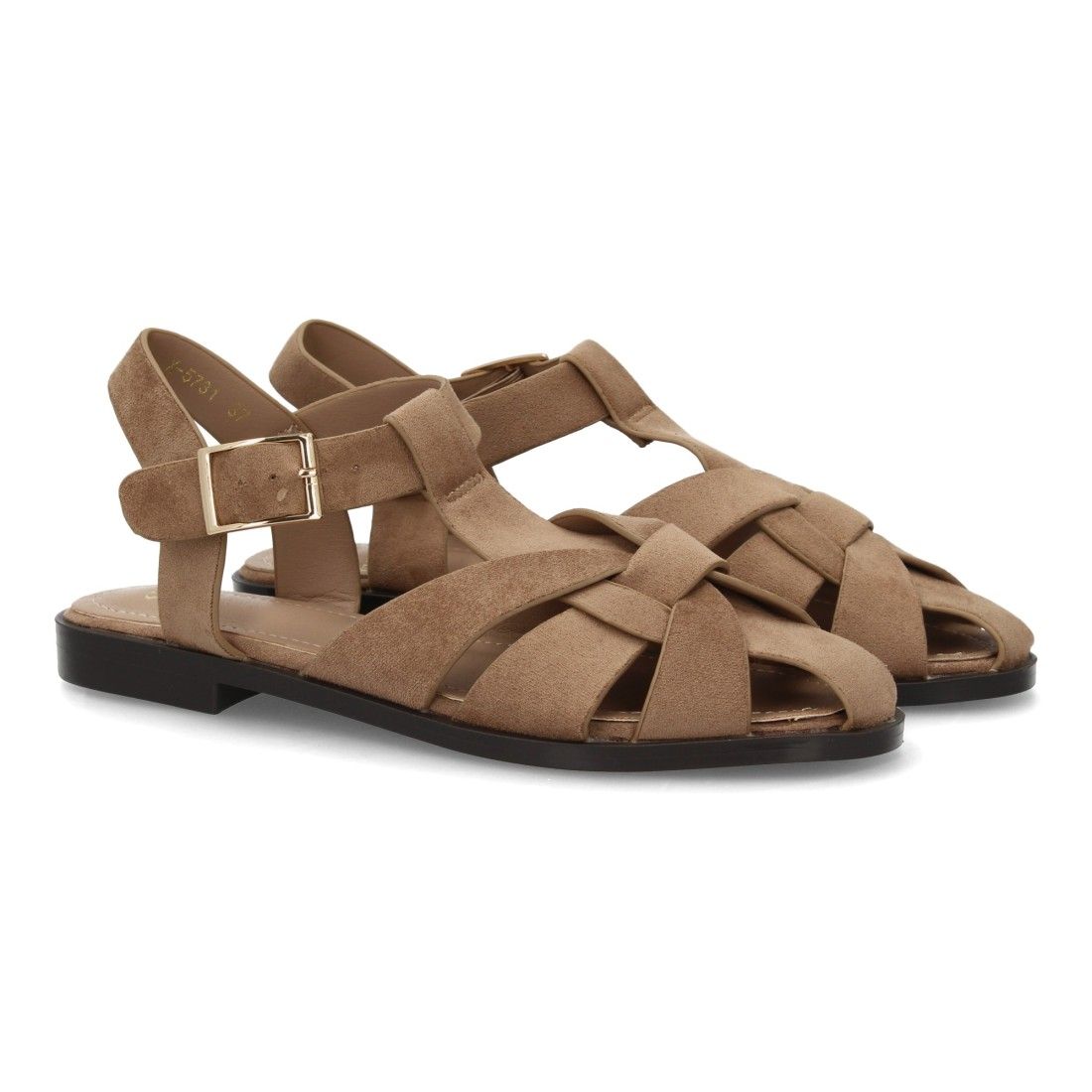 Sandalia romana plana mujer cómoda, acabado suave, diseño abierto que favorece la transpiración. Cierre de hebilla, suela ligera y plana, ideal primavera verano.