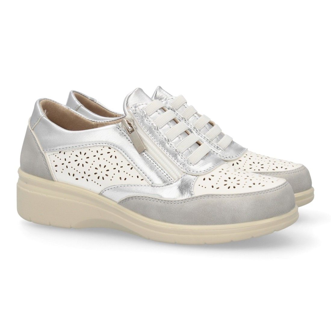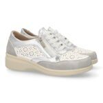 Zapatilla casual de mujer, muy comodas con cordones elásticos y cierre de cremallera seguro. Cuña ligera, con calados. Ideales para Primavera-Verano.