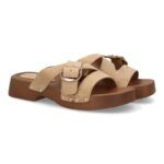 Sandalia pala plataforma hebilla elegante, suela de estilo madera. Adorno de tachuelas y hebilla. Tiras anchas cruzadas. Ideal para mujer en la temporada de primavera verano.