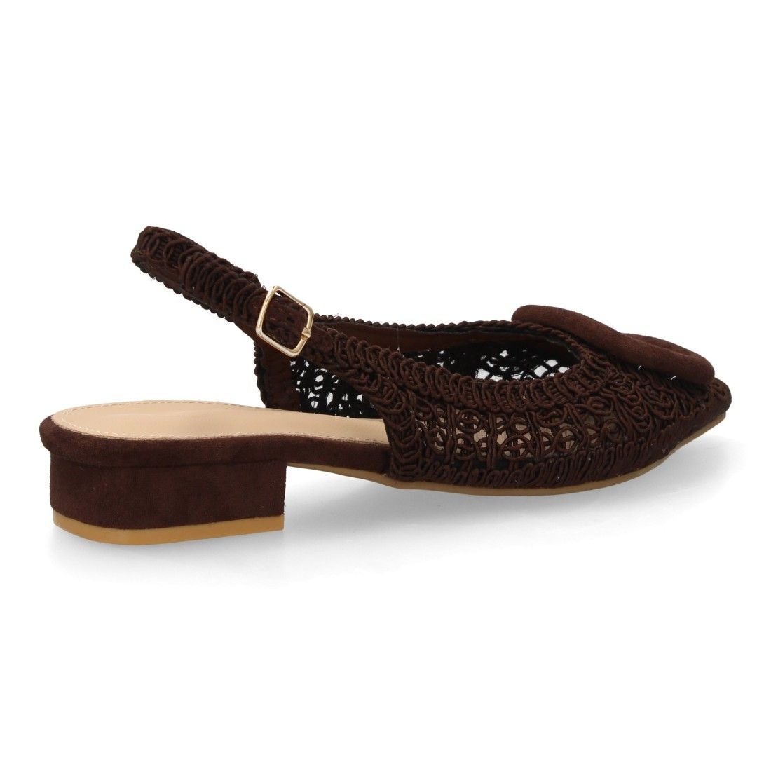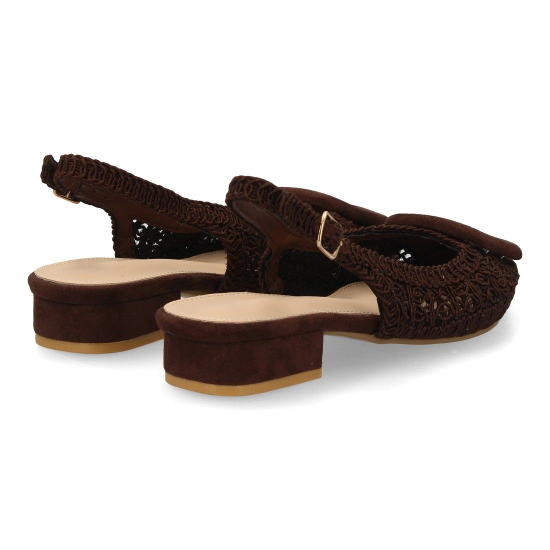 Zapato destalonado de mujer con tacón bajo, diseño de tejido aporta frescura y un estilo artesanal. Calzado cómodo, ligero y acolchado. Ideal para primavera verano.