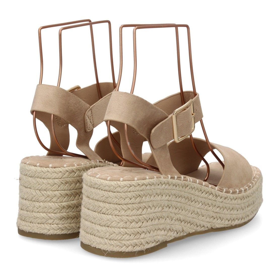 Sandalia de mujer con cuña de yute, acolchada y ligera para el día a día. Tira ancha y cierre de hebilla con estampado liso. Ideal verano.