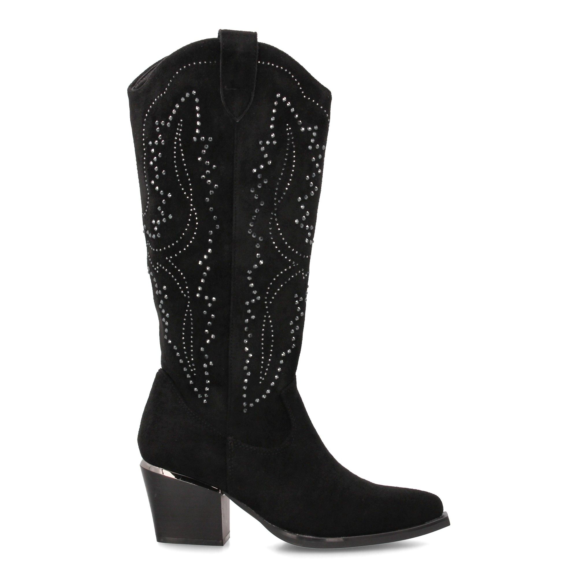 Botas de mujer con diseño elegante y detalles brillantes ideales para destacar en cualquier ocasión con su elegante silueta sujeción cómoda gracias a su tacón cubano de 6cm. Estilo cowboy con cierre lateral de cremallera.