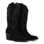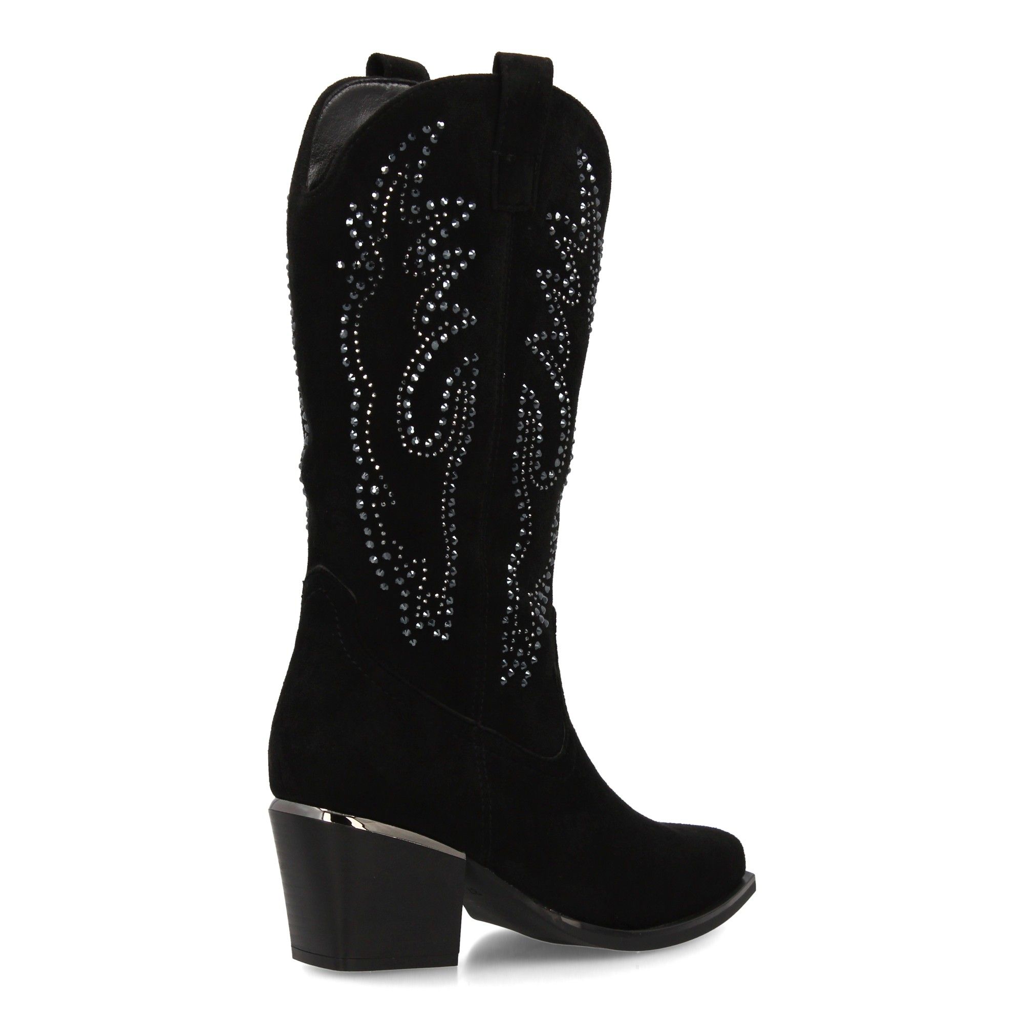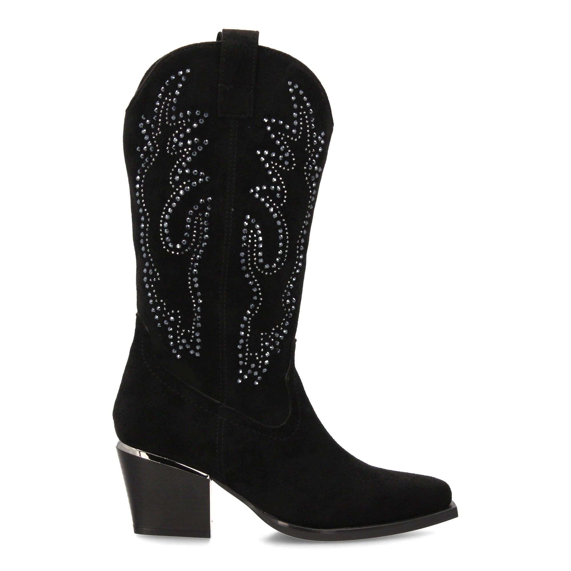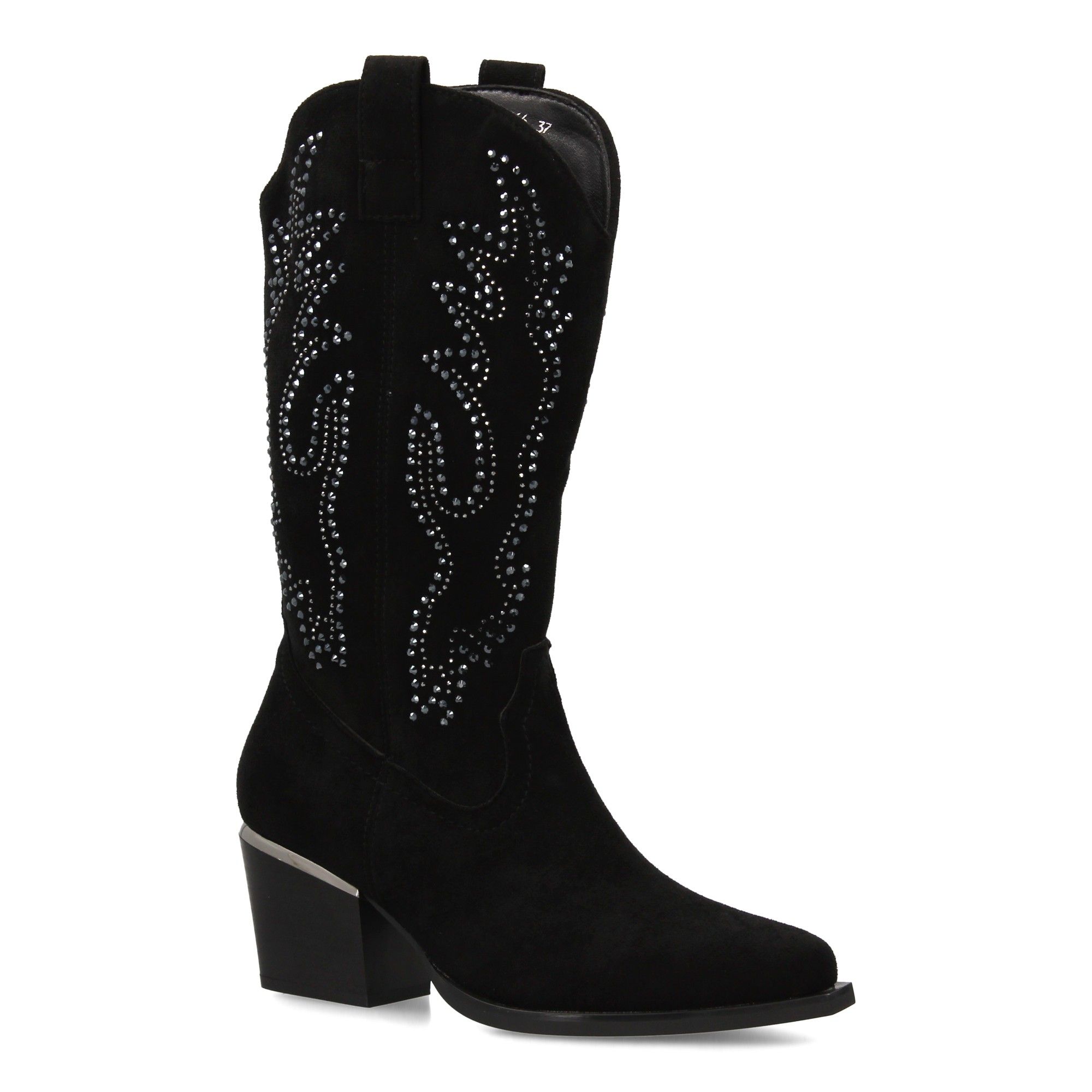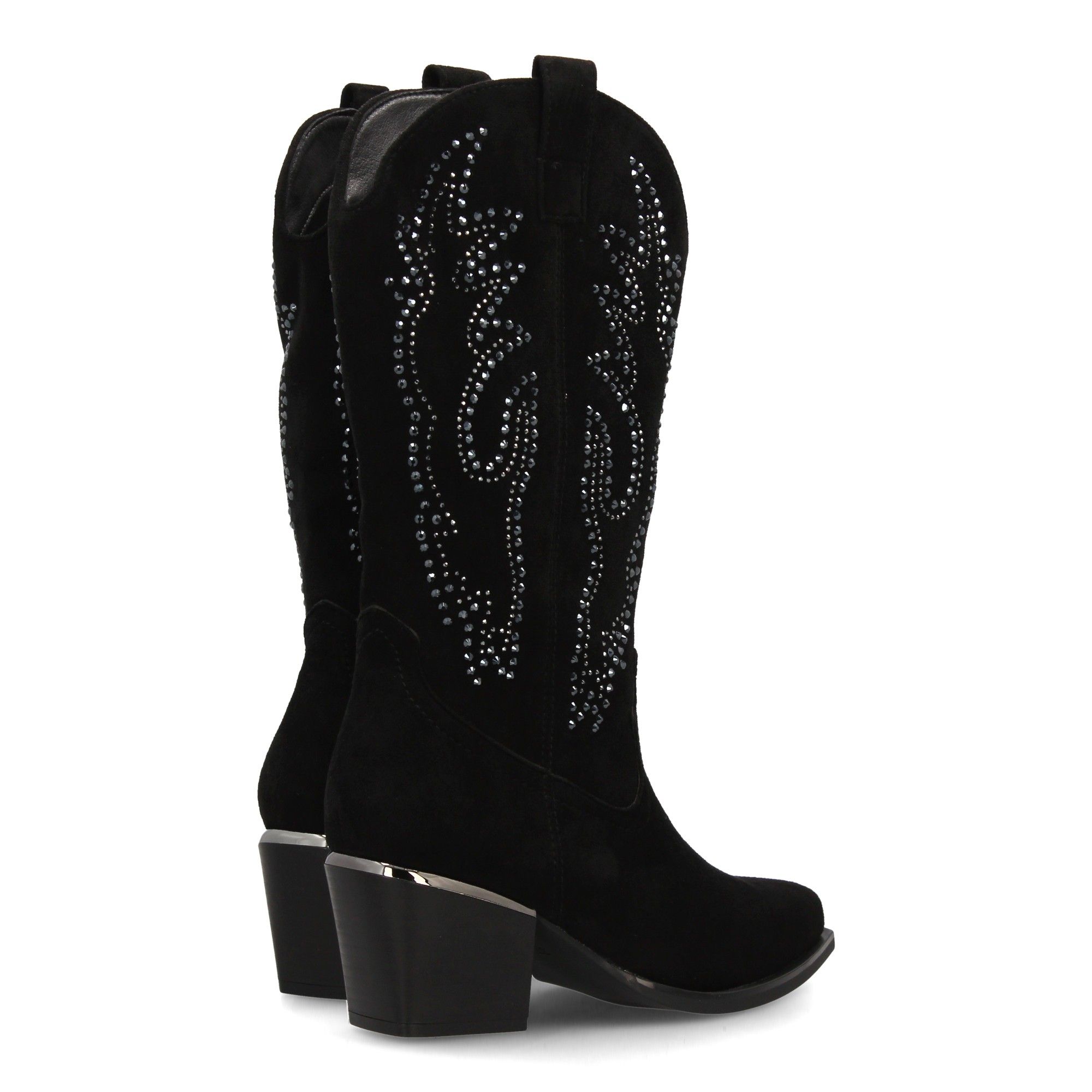 Bota de Mujer con Detalles brillantes elegantes en la caña y Tacón comodo