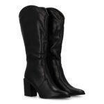 Bota con tacón para mujer con estampado liso diseño moderno de punta fina Cierre de cremallera. Ideal Otoño invierno.