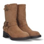 Botas moteras tacón bajo hebillas mujer color Camel