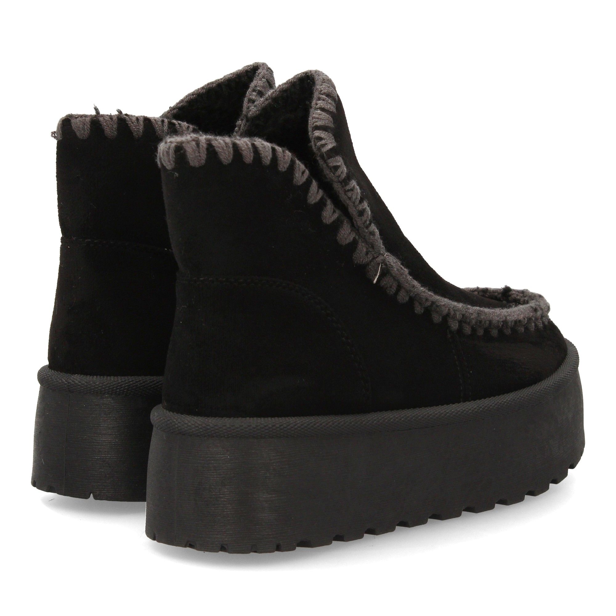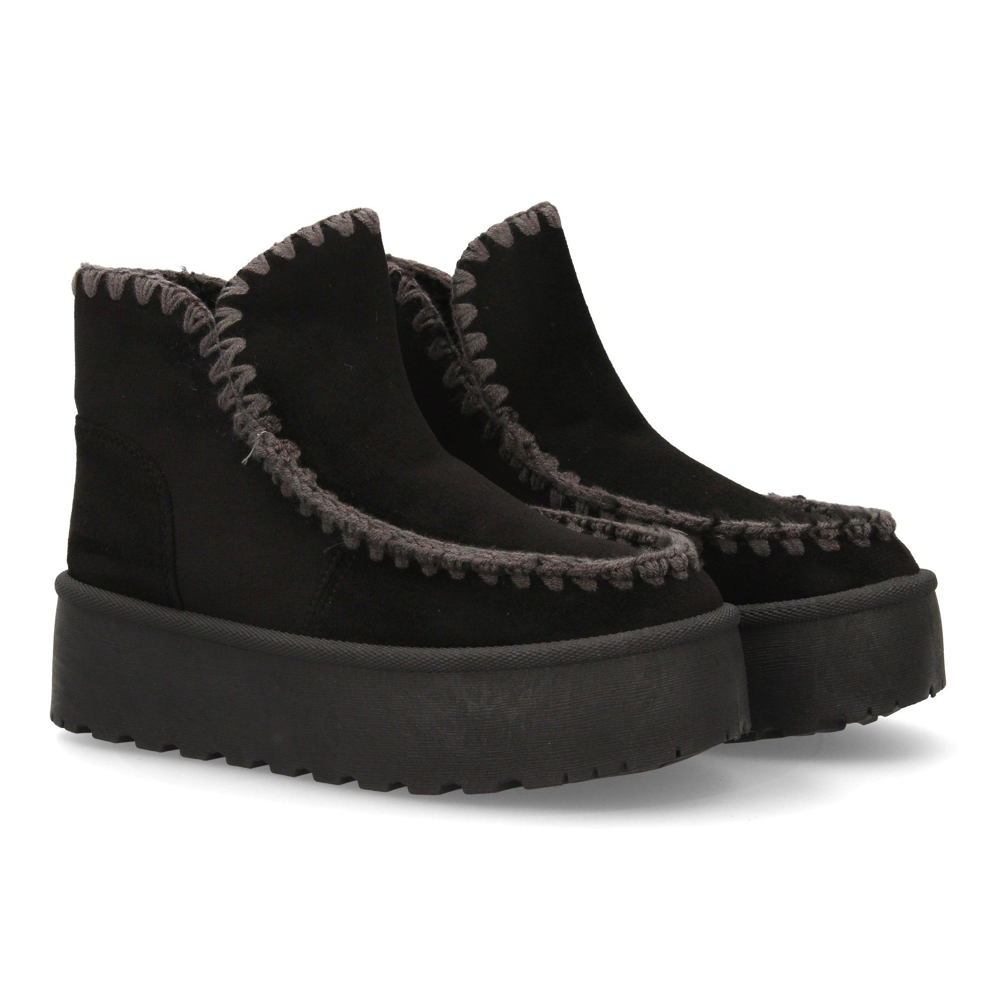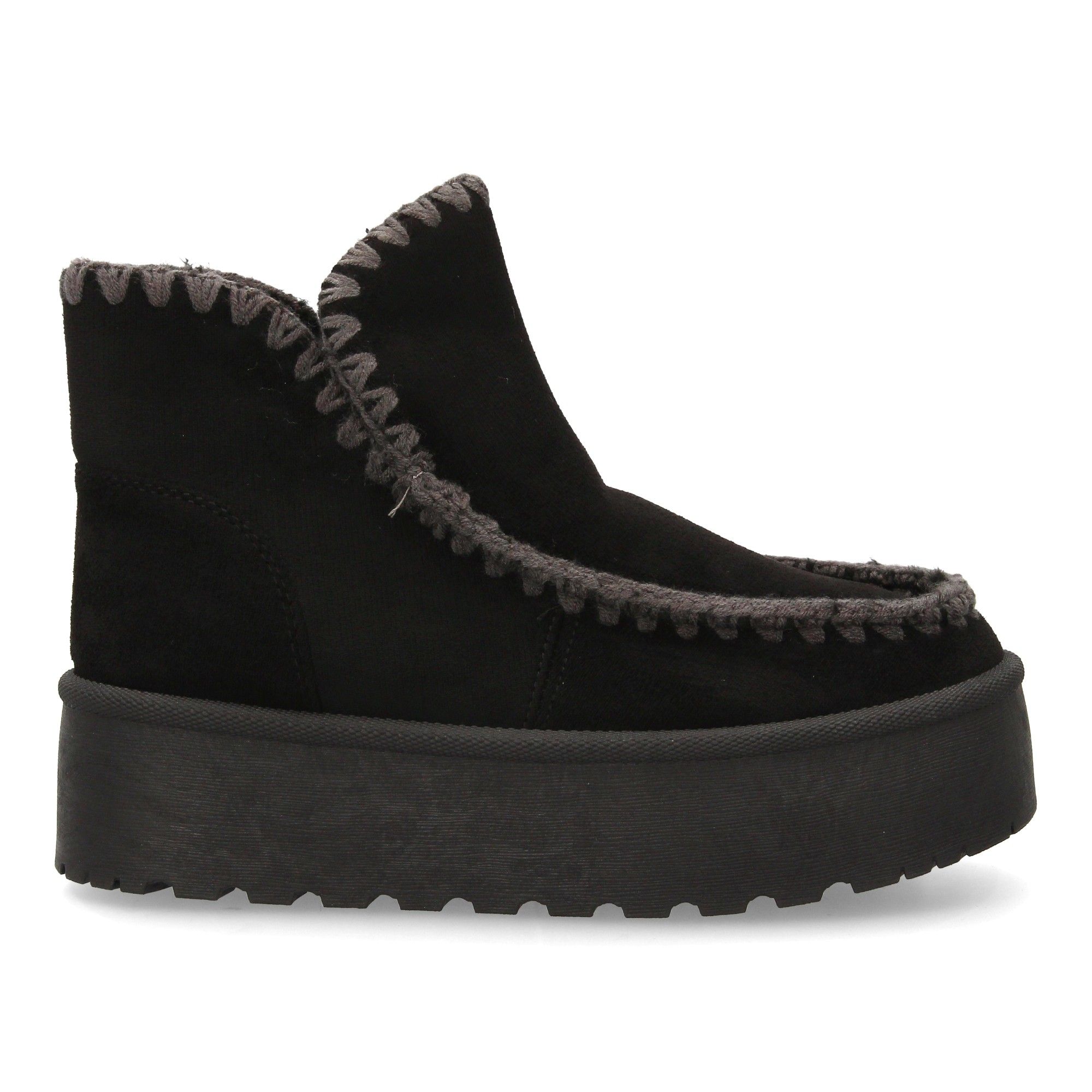 Botín de mujer tipo australiano con plataforma ideal para los días fríos de la temporada Otoño Invierno. Forrado interiormente con suave borreguillo costuras gruesas decorativas diseño artesanal.