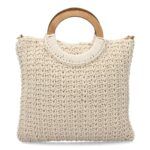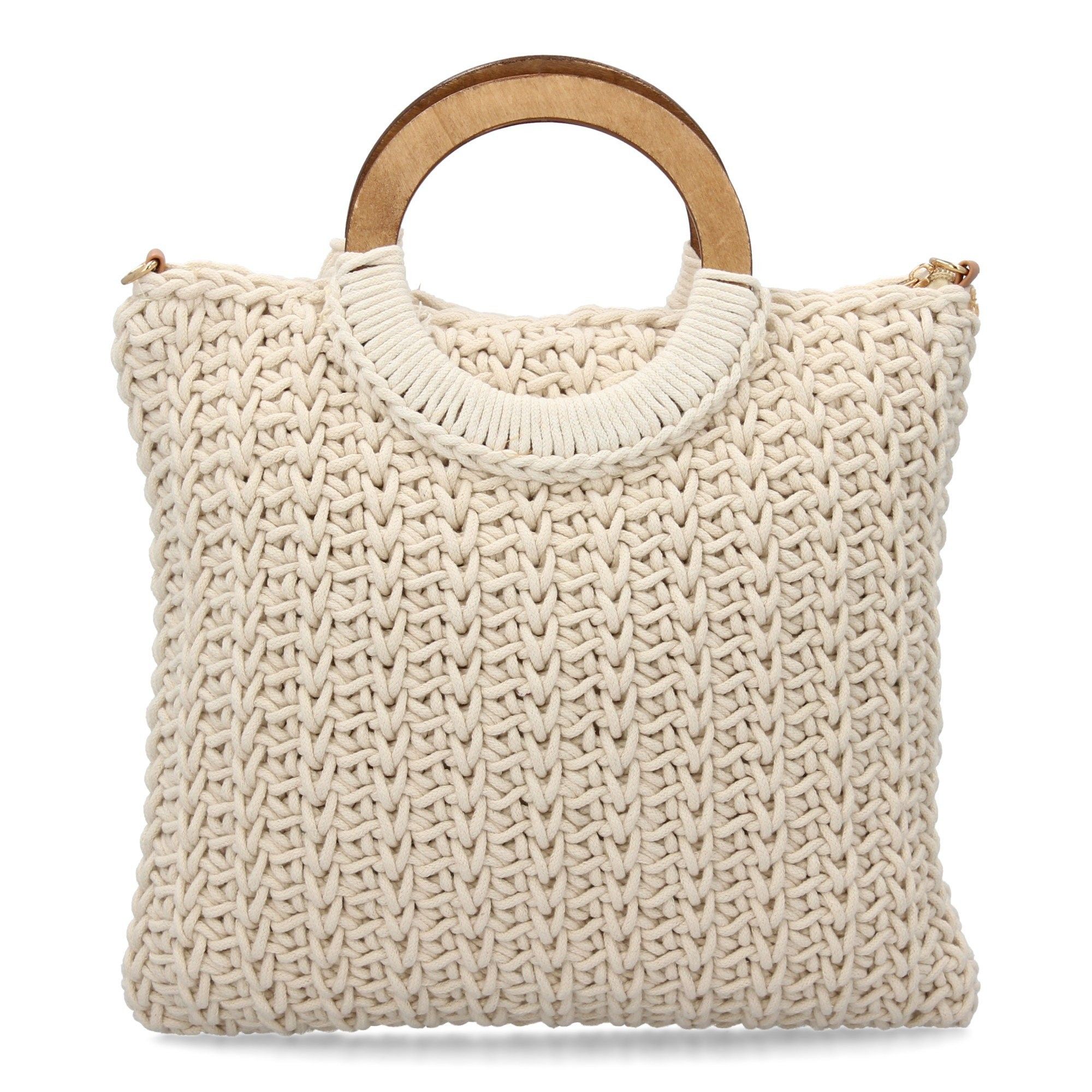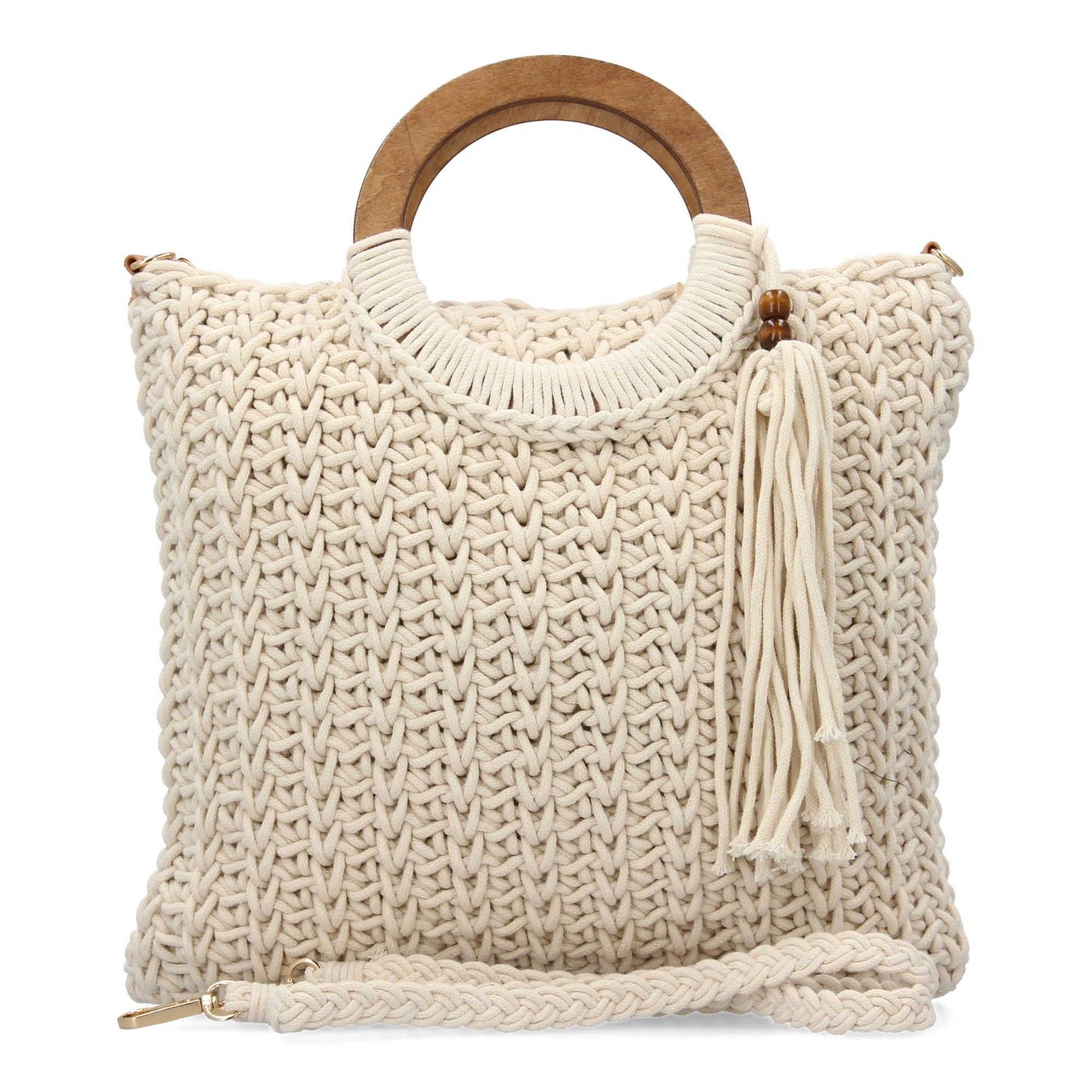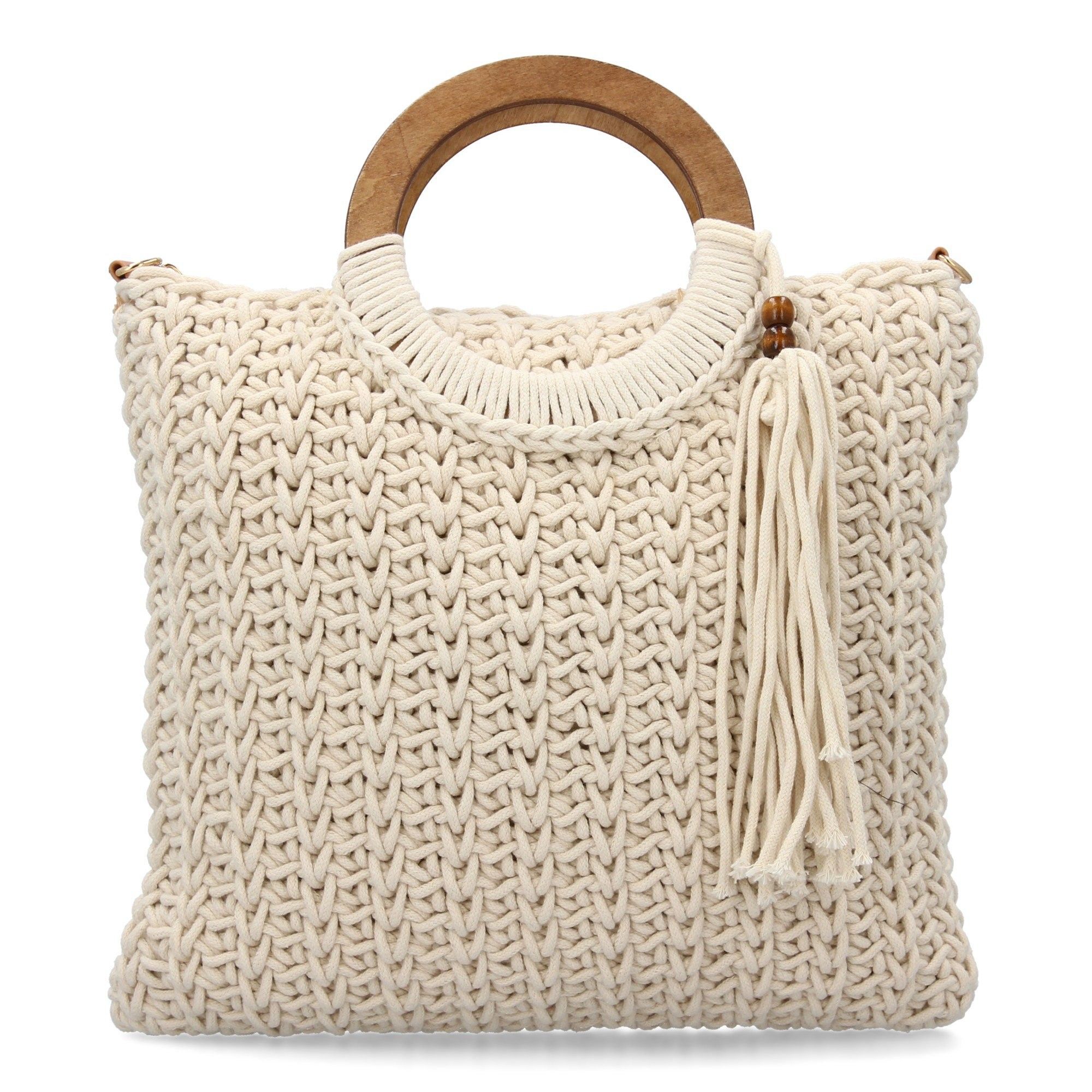 Bolso de hombro para mujer, diseño moderno con adorno de flecos, cómodo.-Beige