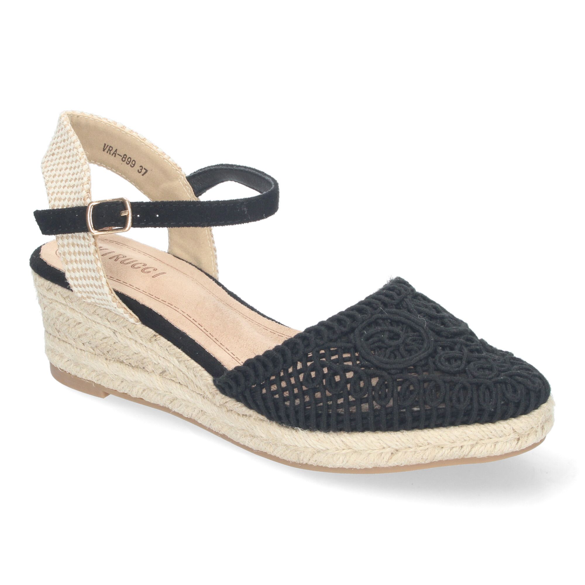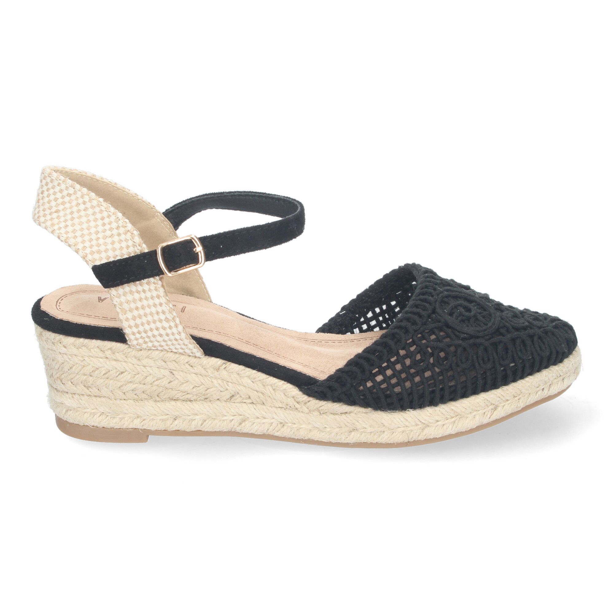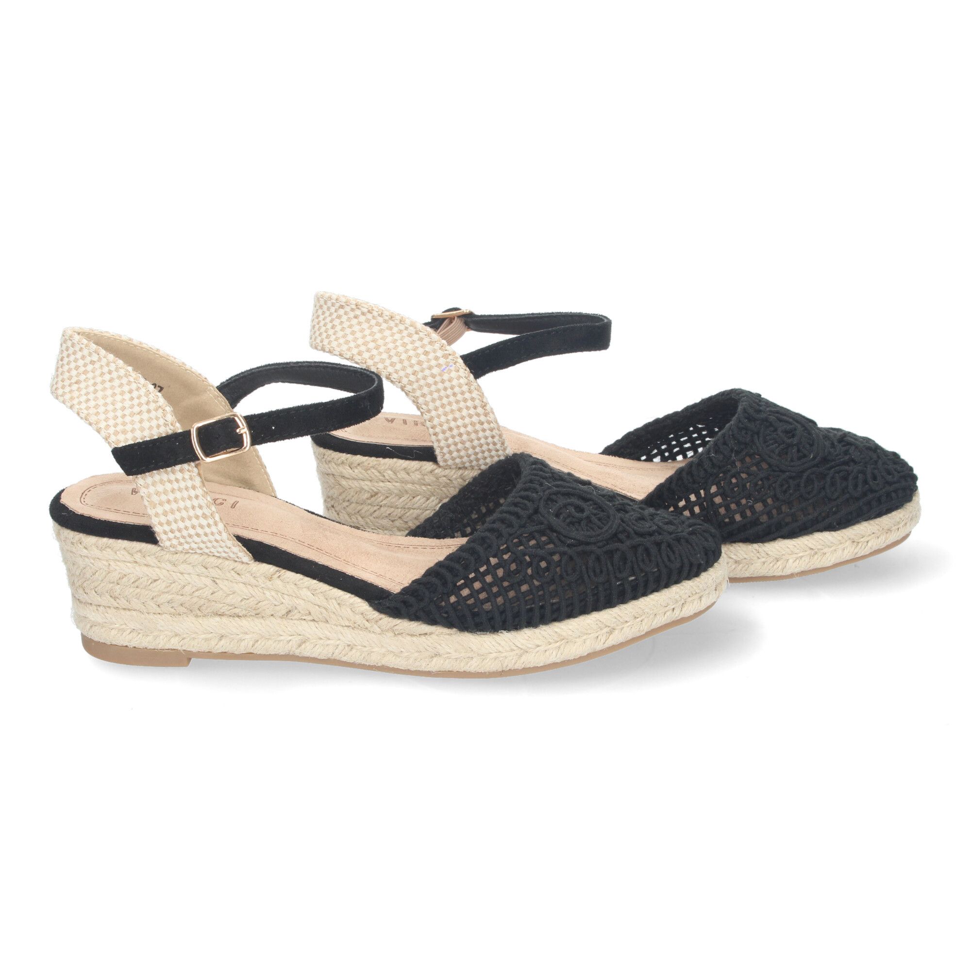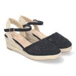 Sandalia de Cuña de Yute para Mujer Estilo Valenciana con Pala Bordada Cierre de Hebilla ideal para Primavera-Verano.