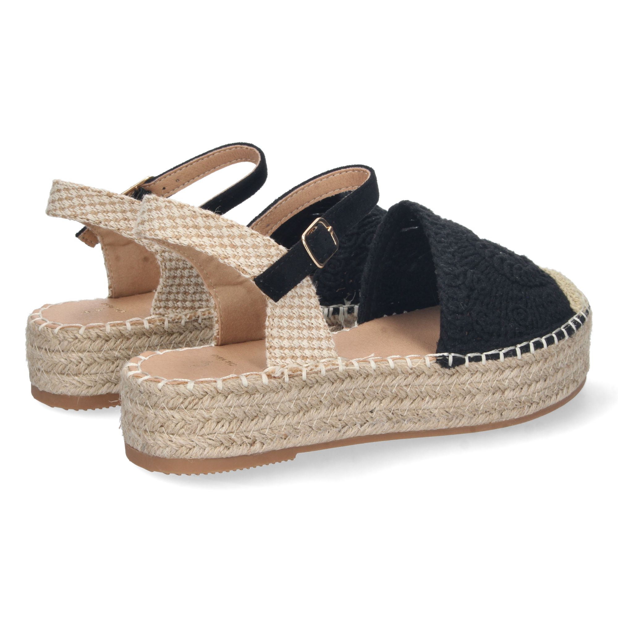 Sandalia de Plataforma para Mujer Comoda Forrada de Yute Pala Cerrada y Entrelazada Talón Abierto y Cierre de Hebilla